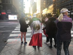 このニューヨークシティマラソン前日のマラソン大会は以前は『インターナショナルフレンドシップラン』という名前の大会だったらしく、参加者は自分の出身地をアピールするという人たちが多かった。↑メキシコ