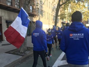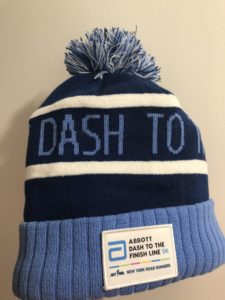 今回のマラソン参加者の"souvenirs(参加賞のお土産)"はこちら↑ブルーの色が可愛いニット帽。寒いニューヨークには暖かいニット帽が助かるよ。